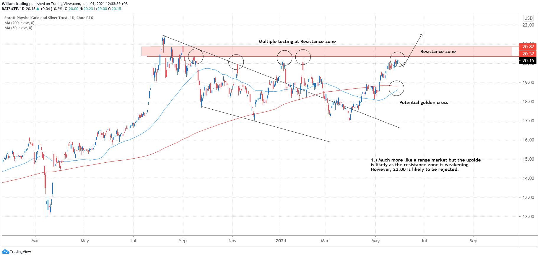 Thanks Wei Ren. I saw the daily upside for EQX – equinox gold. If the price can move and stay above the 200 day moving average $10.2 Will this be a bullish long term up trend for EQX ? Is it strongly recommended to take profit at resistance zone 1&2 by selling half or holding onto the stock ?