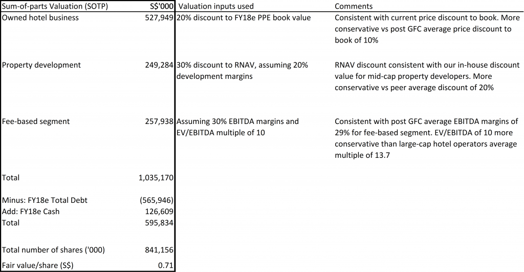 Outlook is positive as we expect RevPAR strength for the Group’s biggest market Thailand to sustain. The weak 1Q17 following the passing of the King, will be a low base comparison. We also expect the competition from oversupply of rooms in Maldives to stabilise towards 2H18 as like-for-like competing room supply tapers off in 2018. The Group has an estimated unrecognised revenue of S$50mn, which will be recognised in FY18. Further price catalysts could come from the realisation of management contract deals under the partnerships with Accor and Vanke.