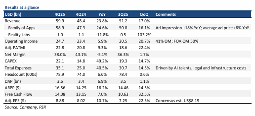 4Q25, with ad revenue reaching US$58.1bn, up 24% YoY (4Q24: +21% YoY) driven by higher