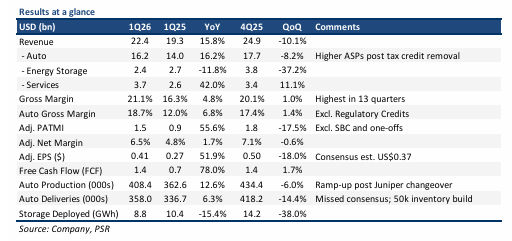 end-1Q26 (+16% QoQ; +38% YoY). This is the clearest near-term proof point for TSLA’s