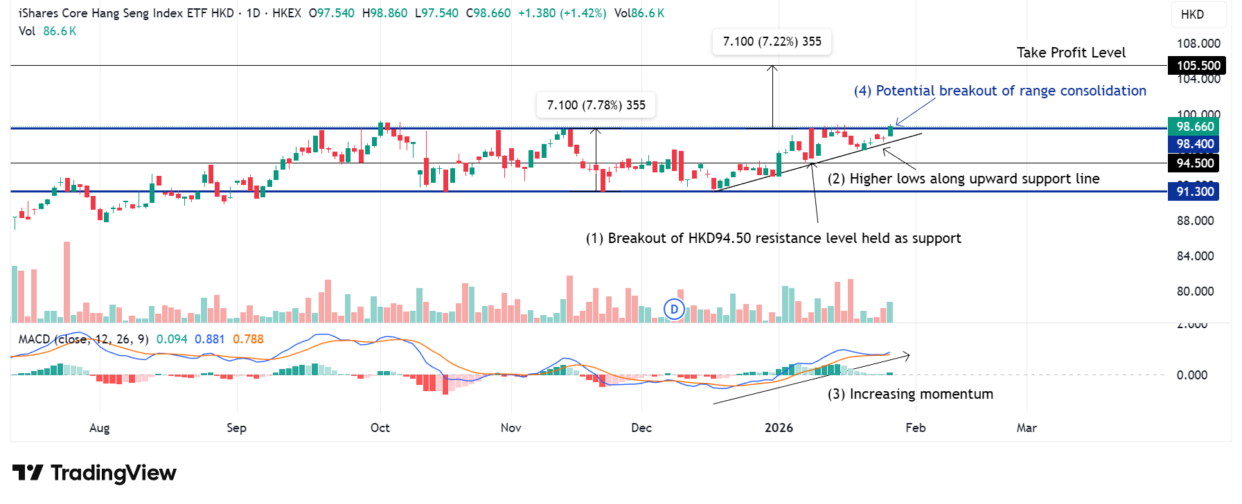 Hang Index (HKEX: HSI) (Daily Chart): Potential for a range consolidation breakout.